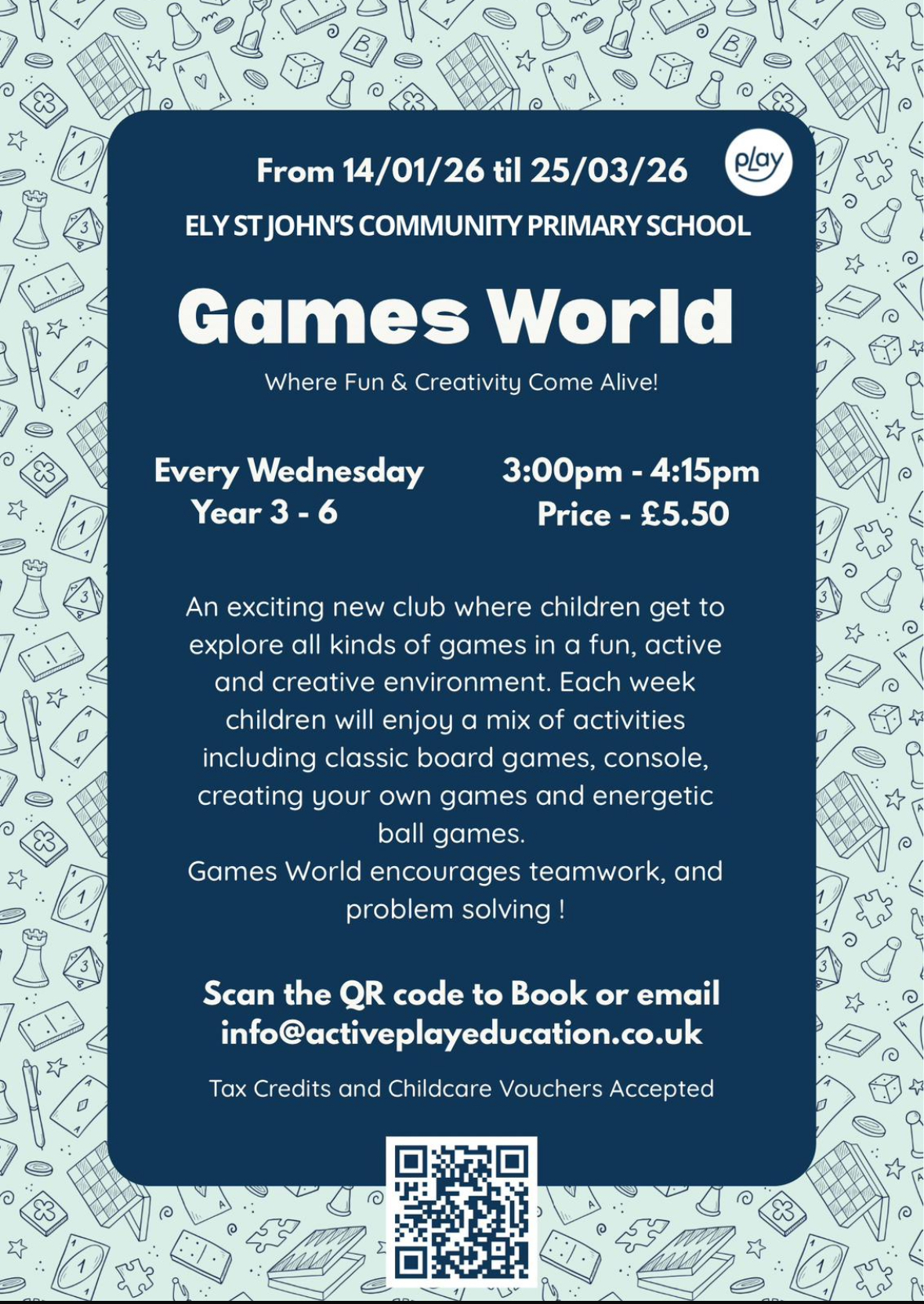 ActivePlay - Ely St Johns Construction Club Spring 26.jpg ActivePlay - Ely St Johns Games World Club Spring 26.jpg ActivePlay - KS2 Football Club Spring 26.jpg ActivePlay - Ely St Johns KS1 Football Spring 26.jpg